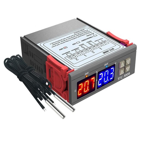STC-3008 12 В, 24 В, 110-220 В, двойной цифровой термостат