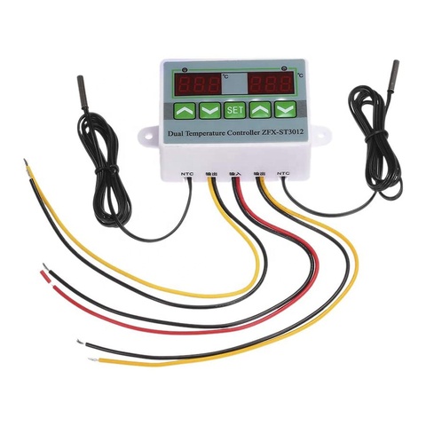 Цифровой светодиодный двойной термометр ST3012, 220 В переменного тока, 12 В, 24 В, термостат, контроллер инкубатора, микрокомпьютер, двойной зонд